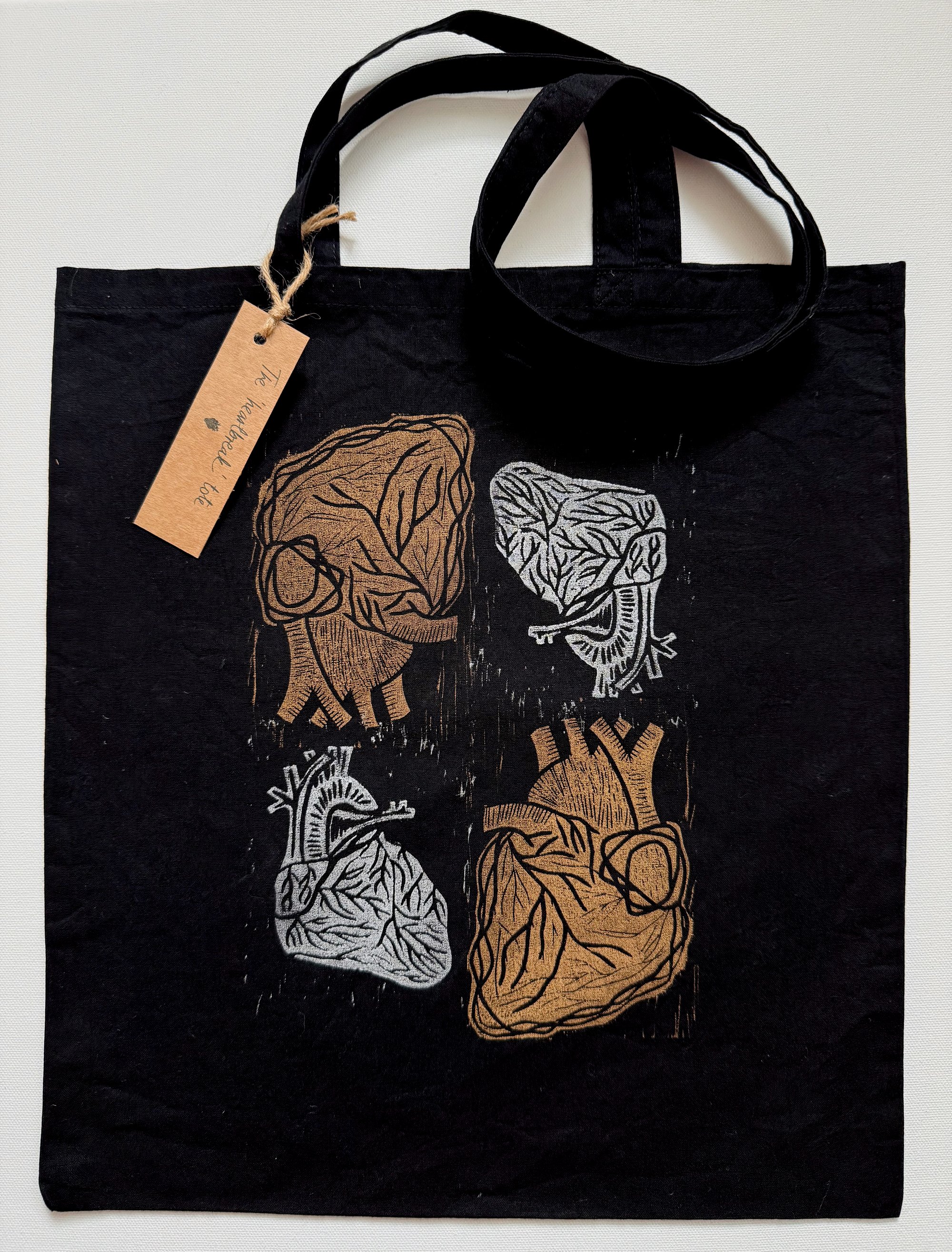 Hand printed tote bag inspired by the 'Heartbreak sessions' linocut series Dimensions: 38 x 42 cm (180 gr/m2) Made in Stockholm πΈπͺ